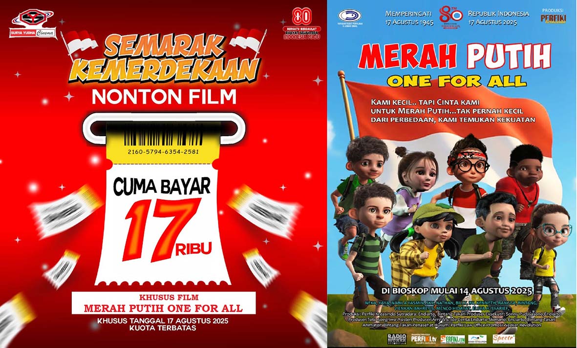 PERFIKI.NEWS – JAKARTA: Dalam semangat memperingati 80 tahun Kemerdekaan Republik Indonesia, film animasi “Merah Putih One For All” menghadirkan program spesial berupa diskon harga tiket nonton hanya Rp 17.000 khusus untuk pemutaran di Surya Yudha Cinema Banjarnegara pada tanggal 17 Agustus 2025.